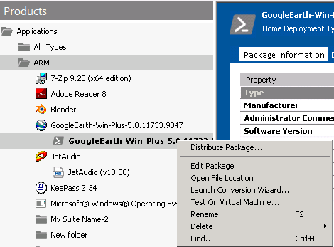 You can also edit the .ps1 file by right-clicking on the PowerShell-wrapped package node in the Application Catalog tree, and then clicking Edit Package on the menu.