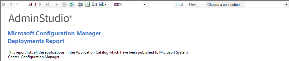 - If you have multiple connections to ConfigMgr (Formerly called as System Center Configuration Manager) servers, select the connection that you want to view a report on from the Choose a connection list.