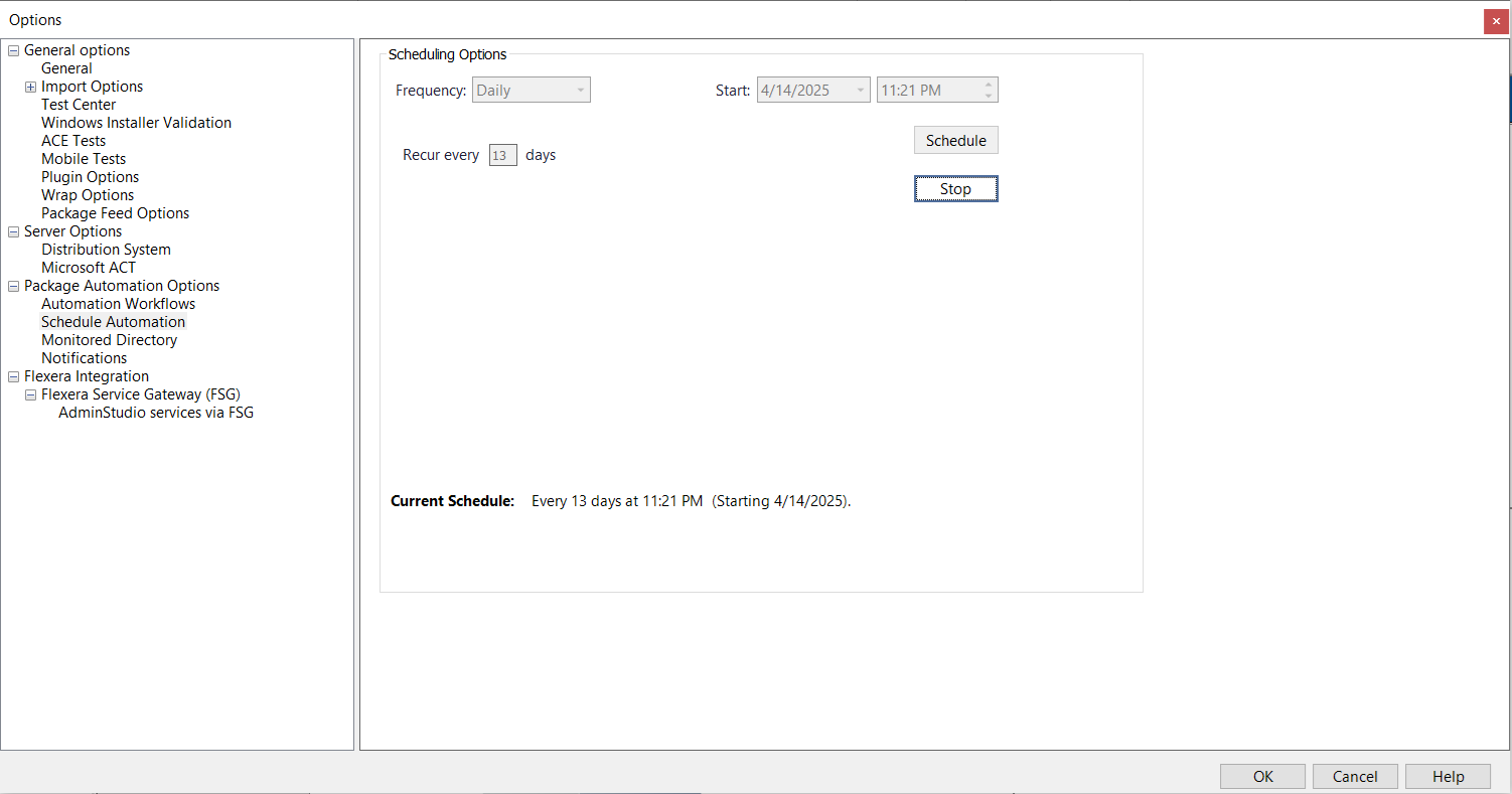 Under Package Automation Options, select Schedule Automation. The Scheduling Options tab opens.