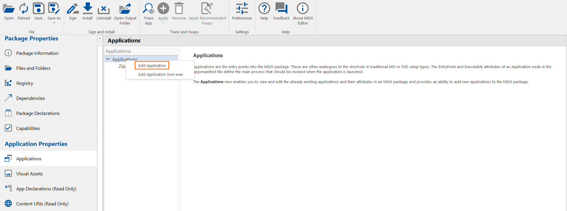 Right-click on the Applications node, and then select Add Application from the context menu.
